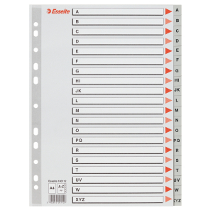 Przekładki ESSELTE plastik PP A4 szare A-Z