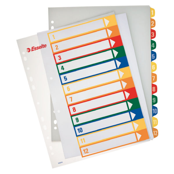 Przekładki ESSELTE MAXI plastik PP do nadruku A4 1-12