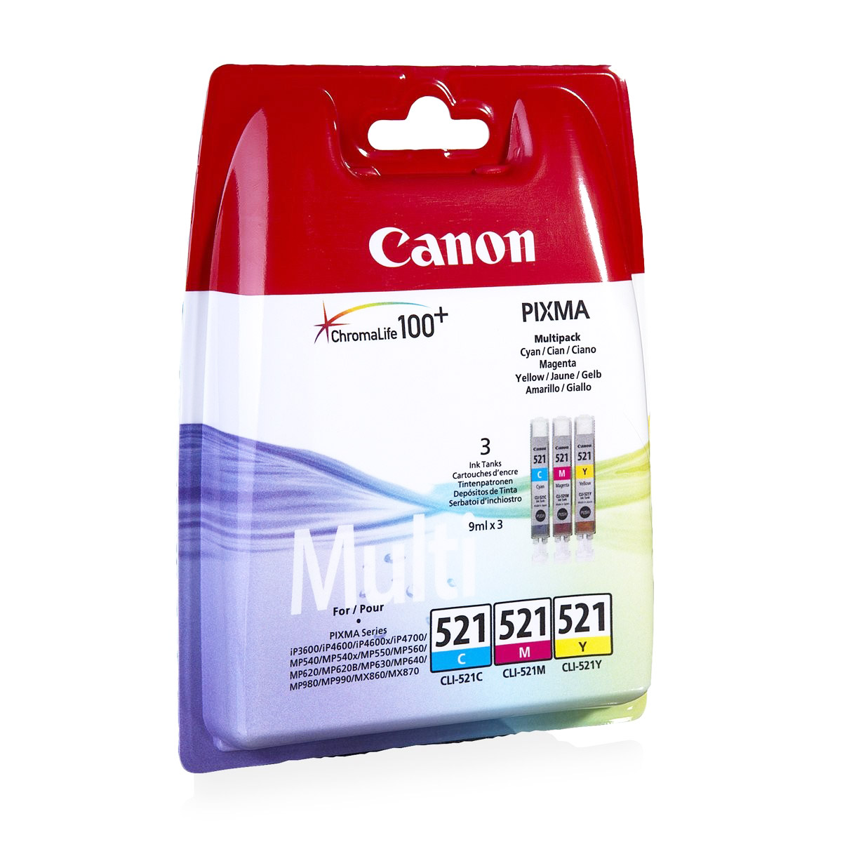 Oryginalny zestaw trzech kolorowych tuszy firmy Canon.