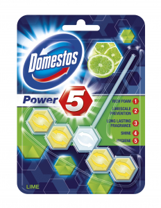 Kostka toaletowa Domestos Power 5 to kompleksowy produkt, który zapewni Twojej toalecie bezpieczeństwo i czystość: higienę, ochrona przed kamieniem, pianę, świeżość i połysk. Czy można oczekiwać czegoś więcej od kostki toaletowej?