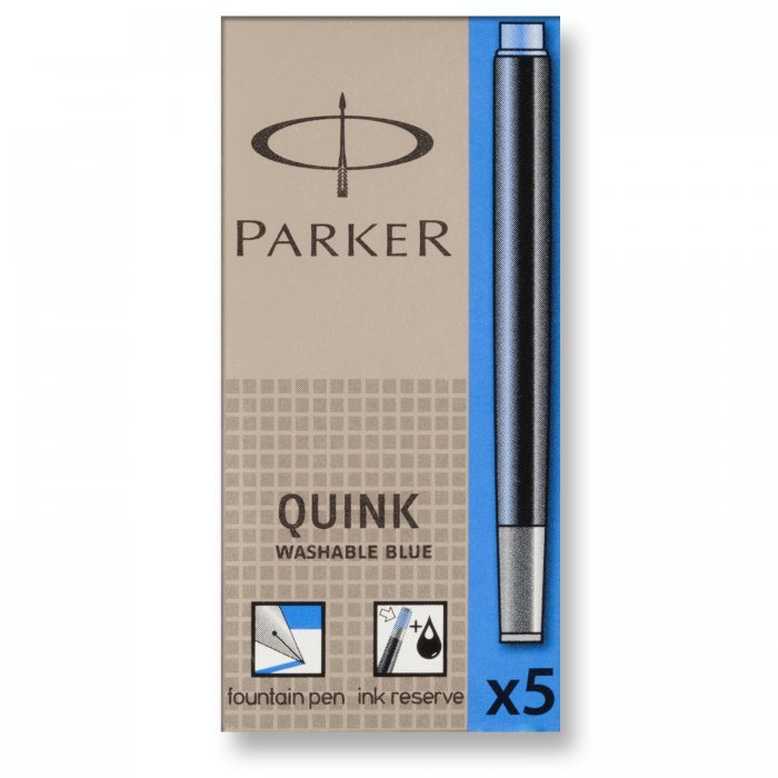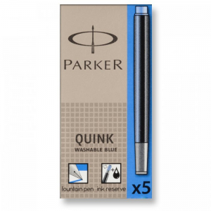 Naboje atramentowe Quink_- naboje do wszystkich piór wiecznych Parkera z dużym zasobnikiem i zbiorniczkiem zapasowym informującym o kończącym się atramencie_- w opakowaniu 5 naboi_- jednostka sprzedaży 1 opakowanie