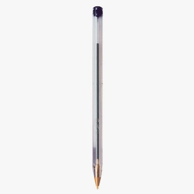 Długopis Cristal- zakończenie i skuwka w kolorze tuszu -transparentny korpus -wentylowana skuwka -końcówka piszaca z węglika wolframu -średnia końcówka 1 mm -szerokość linii pisania 0.4 mm -długość linii pisania 3 000 m -atrament na bazie oleju:trwały.wodoodporny.szybkoschnący (<2s) -produkt bezpieczny.nie zawiera toksyn i metali ciężkich -produkt nie zawiera PVC-polichloku winylu -kod kreskowy na produkcie. jednostka sprzedaży 1 sztuka