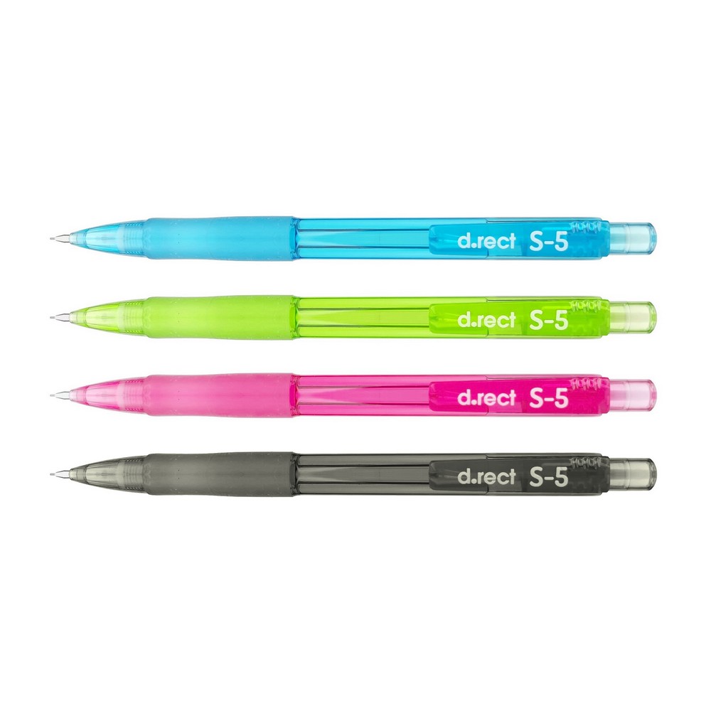 | Ołówek automatyczny w obudowie z trwałego plastiku, wyposażony w grafit 0,5 mm. Przeznaczony do pisania zwykłego, technicznego oraz szkicowania. Posiada gumowy uchwyt, zapewniający komfort i wygodę pisania oraz gumkę pod przyciskiem. Dostępne 4 kolory obudowy. |