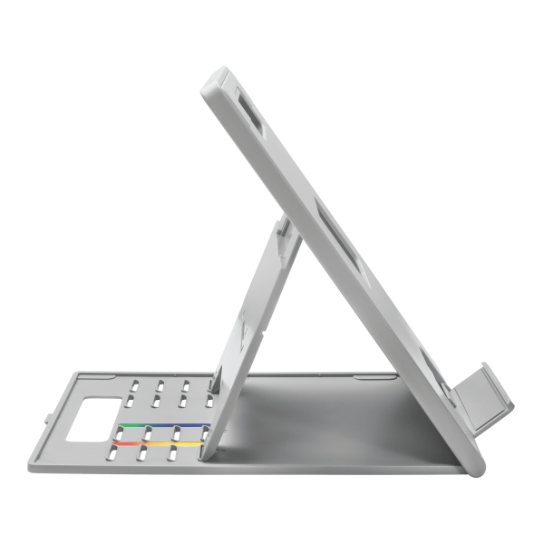 Połącz ergonomiczne korzyści wynikające z podniesienia wysokości ekranu z technologicznymi korzyściami zwiększonej cyrkulacji powietrza dla laptopa z Kensington_ SmartFit_ Easy Riser _ Go Regulowana ergonomiczna podstawa pod laptopa i podstawa chłodząca. Elegancka konstrukcja 2 w 1 ma regulację wysokości i kąta w celu poprawy postawy. promowania prawidłowego ułożenia oczu i wsparcia komfortu szyi i ramion przy jednoczesnym utrzymaniu chłodu wewnętrznych elementów laptopa. Antypoślizgowe podkładki pod stopy zapobiegają przesuwaniu się podstawy do przodu. wyściełane wkładki zapewniają bezpieczne dopasowanie do urządzenia. a wąska. składana konstrukcja jest przystosowana do podróży. Używaj z zewnętrzną klawiaturą i myszą (sprzedawane osobno). Obsługuje 17-calowe laptopy standardowe i do gier.__System SmartFit_ upraszcza idealne ergonomiczne pozycjonowanie wysokości. wykorzystując naukowo udowodnione badania w celu zapewnienia odpowiedniego dopasowania i indywidualnego komfortu._Regulowana wysokość. aby umożliwić użytkownikom podniesienie laptopa na wysokość 180 mm (7.1 cala) w celu optymalnego ustawienia oka_Składana konstrukcja podwójnego stojaka zapewnia dodatkowe opcje wyświetlania i elastyczność w zakresie zajmującego mało miejsca biurka._Konstrukcja skupiona na stabilności wykorzystuje teksturowane wyściełane wkładki i szeroką dolną półkę z przednią wargą. aby zapewnić bezpieczne dopasowanie. a także antypoślizgowe silikonowe podkładki na stopy. które utrzymają urządzenie na miejscu podczas pracy._Pro Air Circulation rozprasza gromadzenie się ciepła. aby wydłużyć żywotność baterii i elementów wewnętrznych urządzenia._Inteligentna przenośność zapewnia zajmujący niewiele miejsca. pasujący do różnych miejsc na biurku. płaską i wąską składaną konstrukcję do podróży. wbudowany uchwyt do łatwego przenoszenia i trwałe twarde krawędzie dla dodatkowej ochrony.