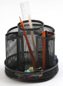 przybornik na biurko, wykonany z metalowej siateczki powlekanej lakierem