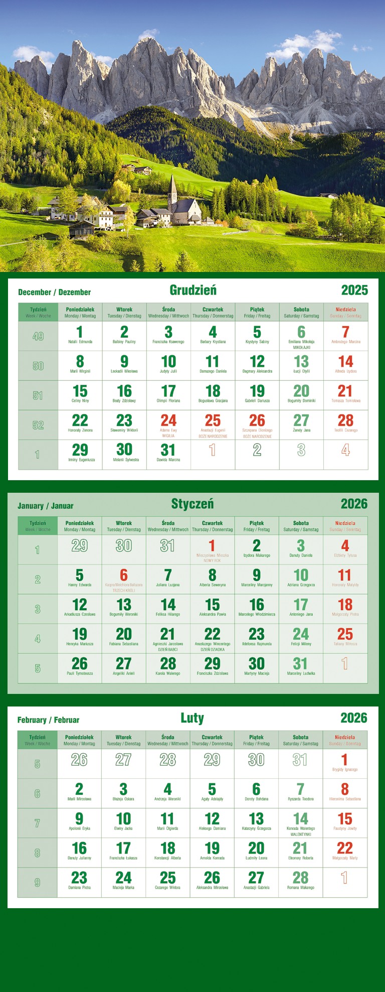Michalczyk i Prokop Kalendarz trójdzielny MiP mniejszy model T106