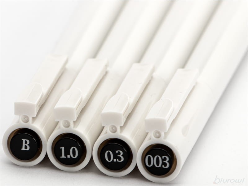 Cienkopis Manga z tuszem na bazie wody jest produktem nadającym się idealnie do tworzenia szkiców, komiksów, projektów graficznych, ale również zdobienia, pisania i kaligrafii. Cztery grubości końcówek fibrowych i igłowych pozwalają na dobranie grubości idealnie dostosowanej do własnych potrzeb. Cienkopisy Manga o końcówkach igłowych (grubość 0.03, 0.3 oraz 1.0 mm) pozwalają na utrzymanie stałej linii, a końcówka pędzelkowa pozwala na kontrolowanie grubości linii według własnej fantazji. Tusz jest odporny na rozmazywanie się.