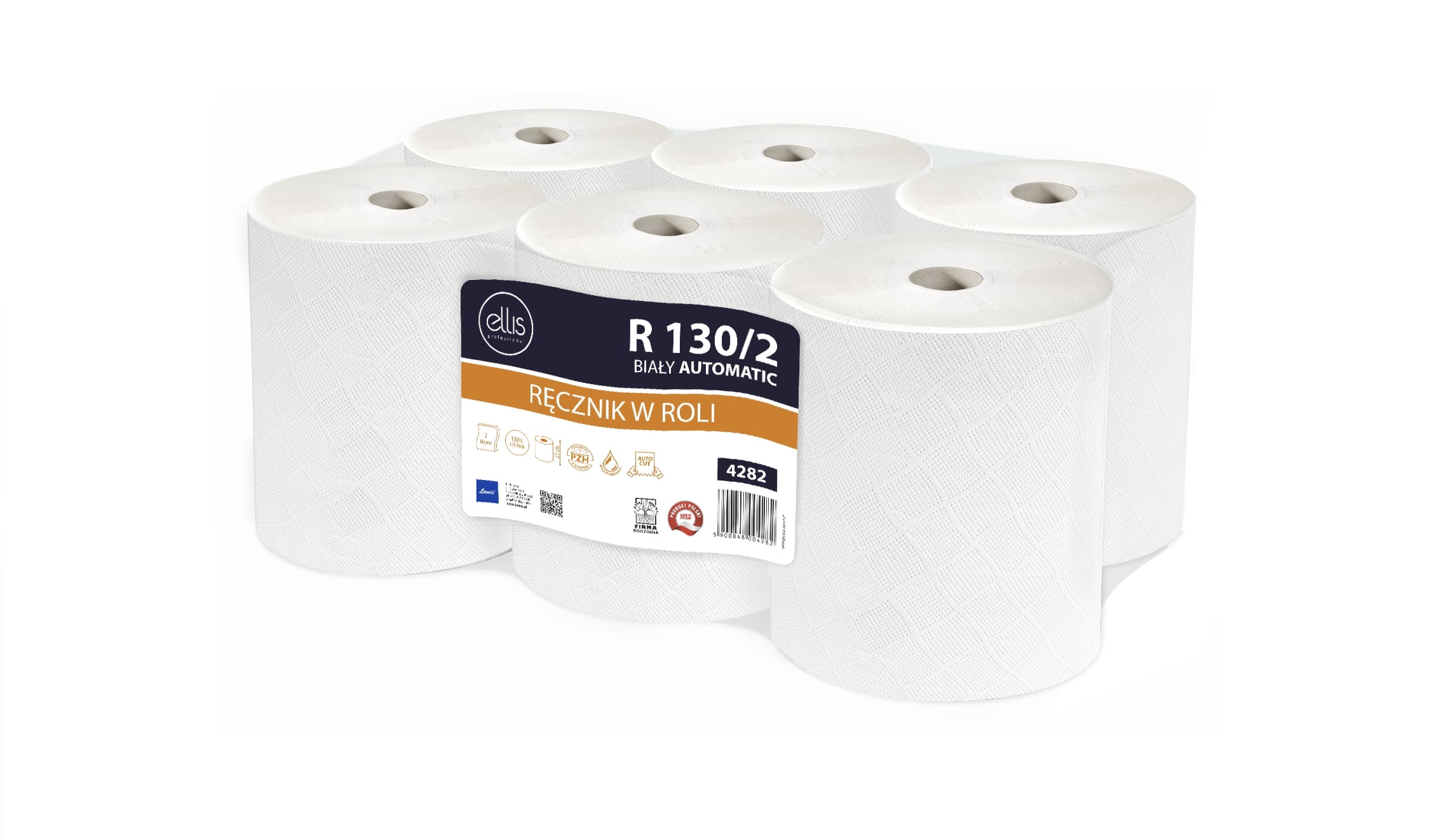 Ręcznik R Ellis Professional 130/2 Automatic posiada dwie warstwy, co zapewnia mu dodatkową wytrzymałość i trwałość. Długość ręcznika wynosi 130 metrów, a wysokość 21 cm. Średnica opakowania to 19 cm. Jest on dostępny w opakowaniach zbiorczych zawierających 6 rolek.