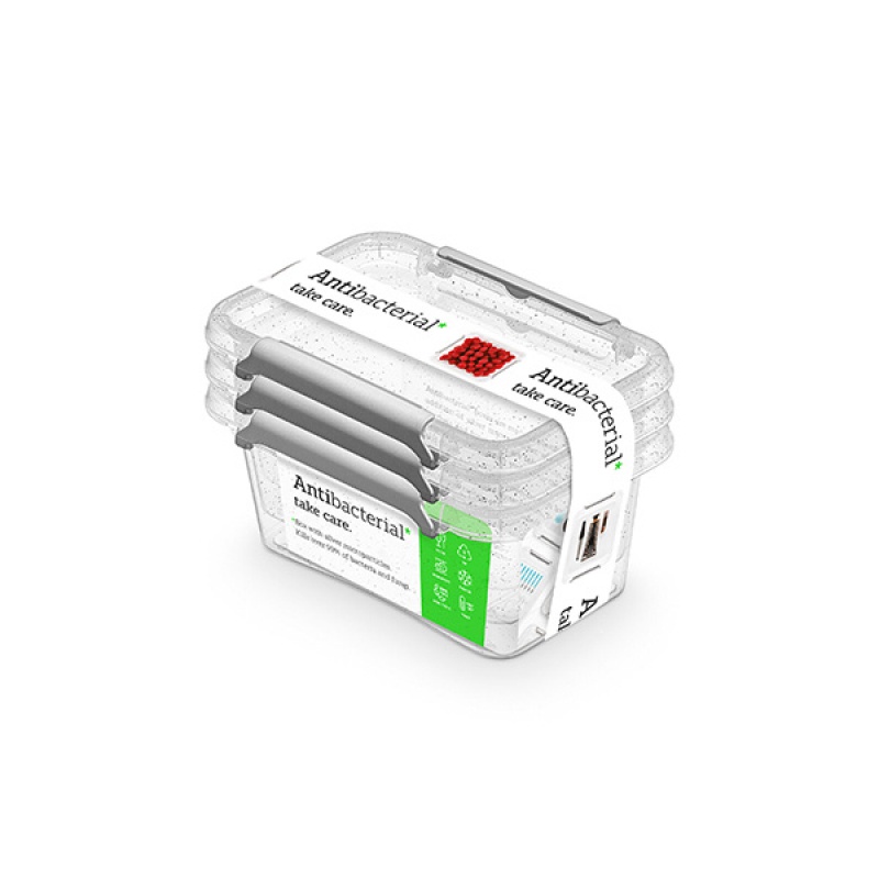 Antibacterial jest pojemnikiem antybakteryjnym. W całym pojemniku oraz klipsach i rączkach umieszczone zostały mikrocząstki srebra. Dzięki temu, zamykany pojemnik jest bardziej bezpieczny dla zdrowia oraz pomaga zachować świeżość i czystość jego zawartości.
