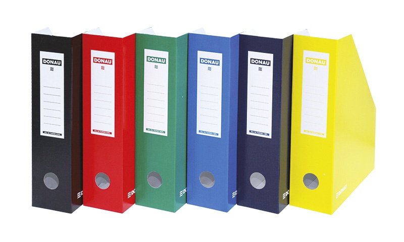 Pojemnik na dokumenty DONAU, karton, ścięty, A4/80mm, lakierowany, czarny
