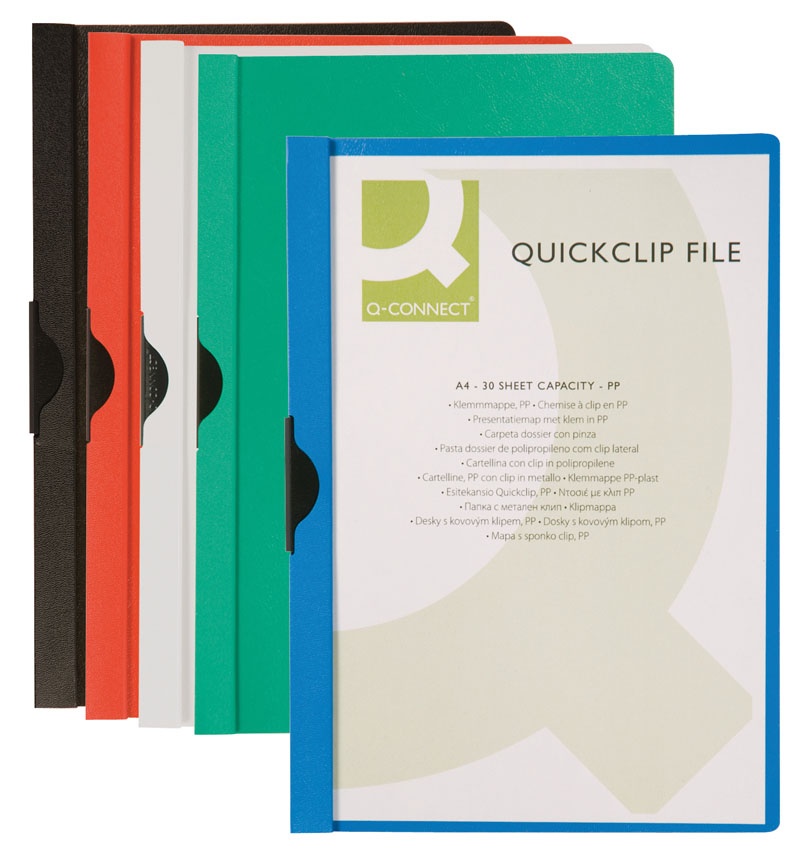 Skoroszyt Q-CONNECT z metalowym klipsem, PP, A4, 200/350mikr., biały