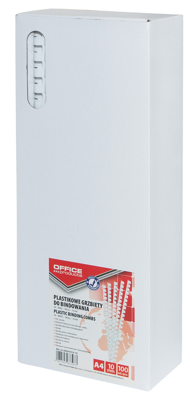 Grzbiety do bindowania OFFICE PRODUCTS, A4, 10mm (65 kartek), 100 szt., białe
