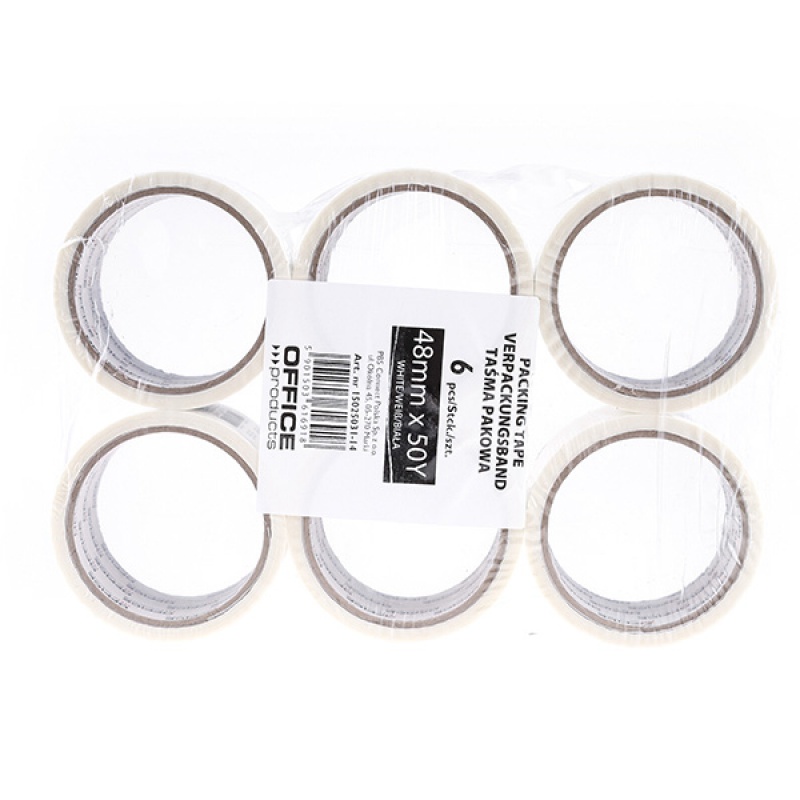 Taśma pakowa OFFICE PRODUCTS, 48mm x 50y, 36mic, EAN na 1szt., biała