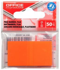 Zakładki indeksujące OFFICE PRODUCTS, PP, 25x43mm, 1x50 kart., zawieszka, pomarańczowe