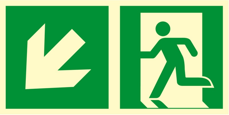 Znak - Kierunek do wyjścia ewakuacyjnego – w dół w lewo 1