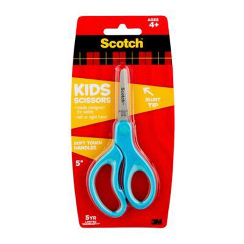 pierwsze nożyczki dla dziecka od marki Scotch™ z ergonomicznym uchwytem dla małych rączek i zaokrąglonym ostrzem dla większego bezpieczeństwa