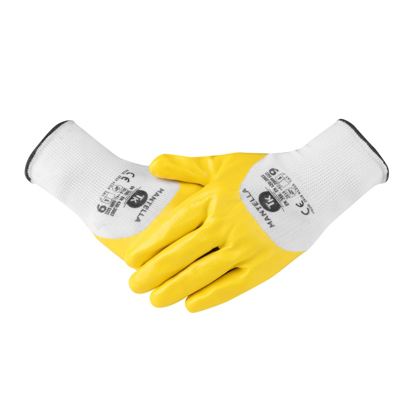MANTELLA – dziana rękawica ochronna pokryta dość grubym żółtym nitrylem. Przeznaczona do prac mechanicznych w zaolejonym środowisku.