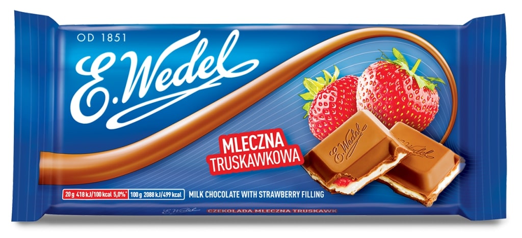 Czekolada Wedel truskawkowa to wspaniała, przepyszna czekolada, której smak nie ma sobie równych. Truskawkowe nadzienie oblane zostało delikatną czekoladą. Choć podobnych słodkości na rynku jest wiele, to właśnie czekolady Wedel cieszą się największa popularnością. Czekoladę możesz podarować bliskiej osobie, możesz poczęstować nią gości, możesz w końcu sobie sprawić słodką, truskawkową przyjemność. Skuś się na tabliczkę wedlowskiej, truskawkowej czekolady. Nie pożałujesz, wręcz przeciwnie na tabliczce z pewnością się nie skończy.