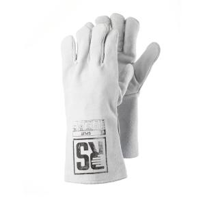 RS SPLIT rękawica spawalnicza szyta z wysokiej jakości skóry dwoinowej bydlęcej, o podwyższonej spoistości posiada podwójne szwy z impregnowanej, grubej bawełny, co zwiększa wygodę użytkowania