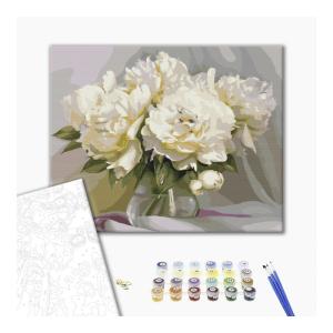 zestaw farb akrylowych, ponumerowanych zgodnie z numerami kolorów, na które podzielone jest płótno