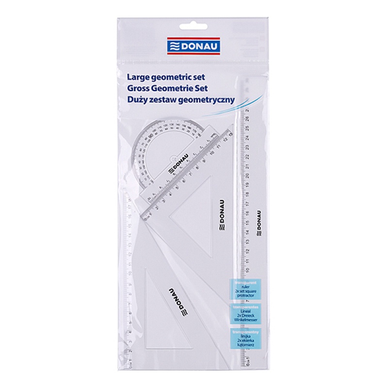 zestaw duży: linijka 30cm, kątomierz, ekierka 13cm i ekierka 18cm
