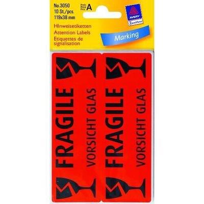 Etykiety informacyjne UWAGA SZKŁO; 10 etyk./op., 119 x 38 mm, czerwony odblaskowy