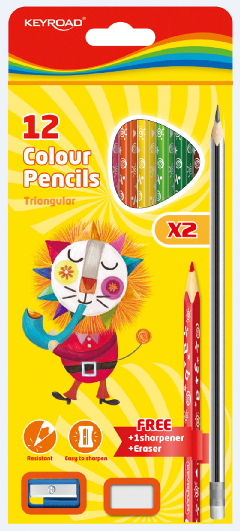 Zestaw kredek ołówkowych KEYROAD, z ołówkami, gumką i temperówką, zawieszką, mix kolorów