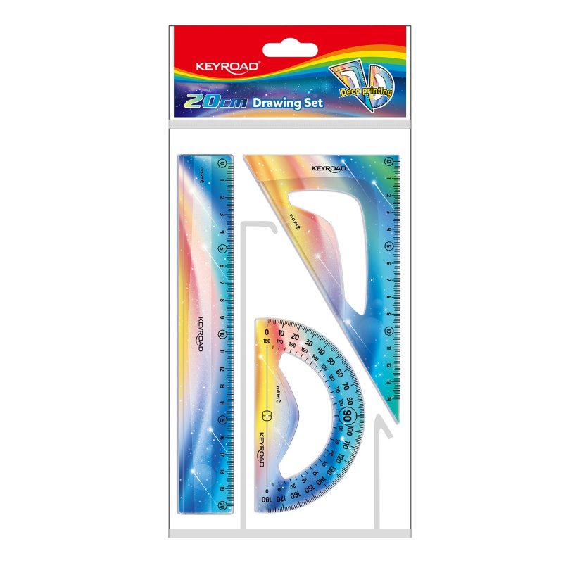 zestaw: linijka 20cm, kątomierz 10cm, ekierka 14cm