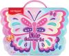 praktyczne pudełko z rączką i uroczym motylkowym motywem ułatwia przechowywanie oraz przenoszenie zestawu, dzięki czemu mali artyści mogą tworzyć wszędzie, gdzie zechcą