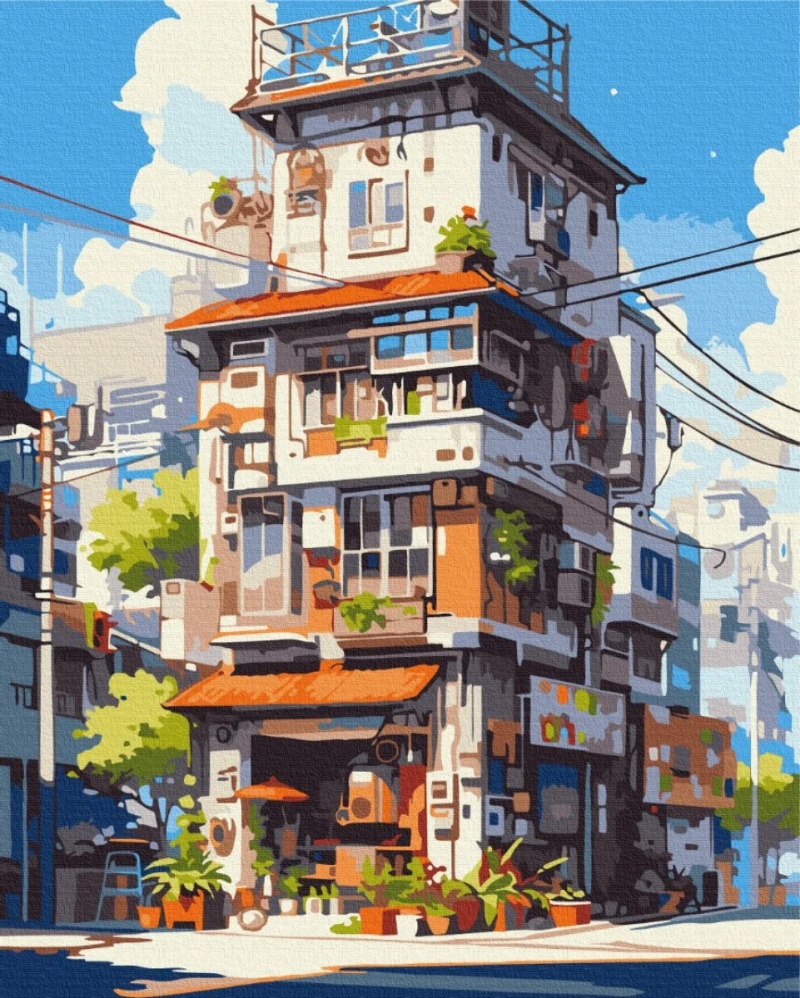 obraz jest podzielony na pola, z których każde oznaczone jest numerem odpowiadającym temu samemu numerowi słoiczka z farbą